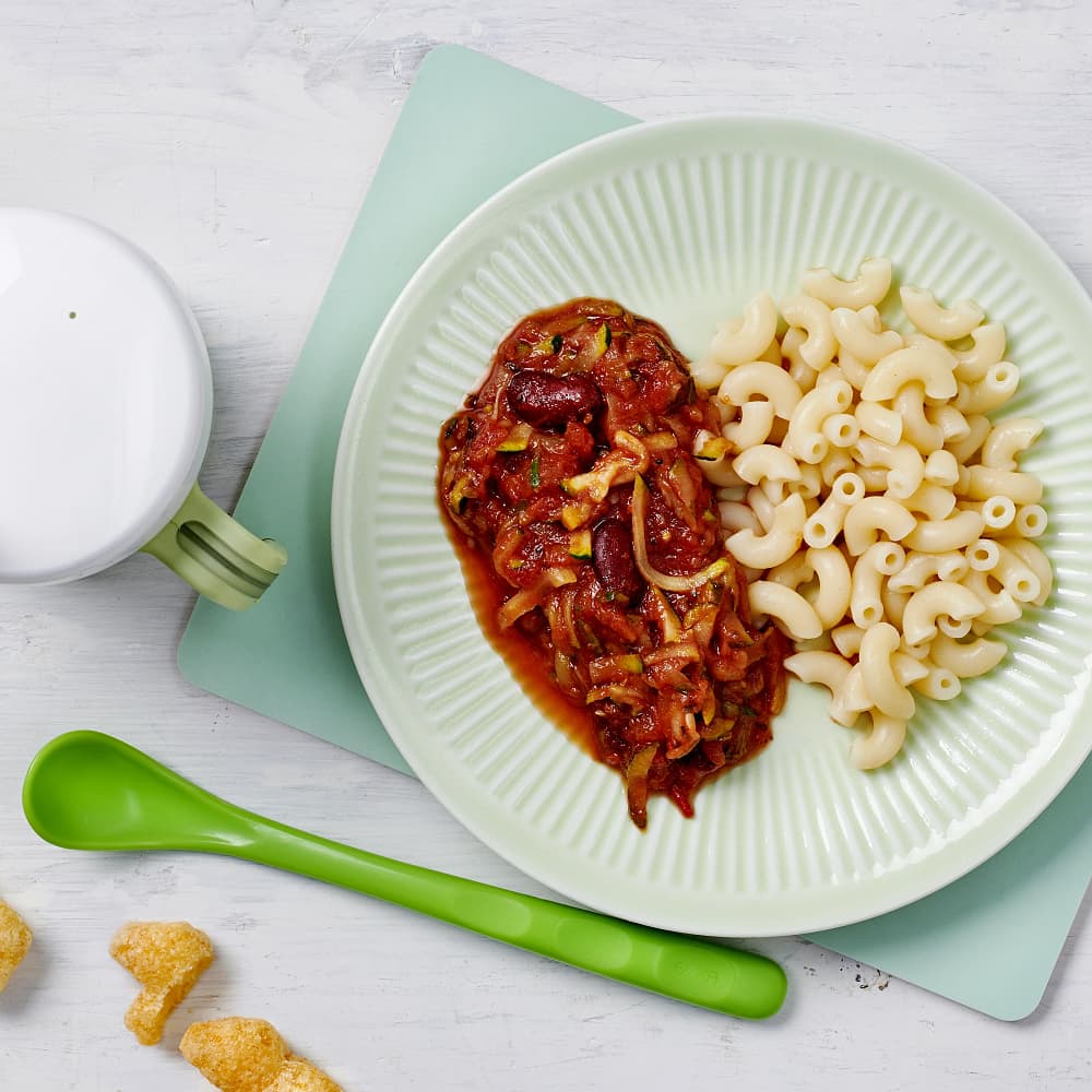 Pasta med bön- och tomatsås och mozzarella