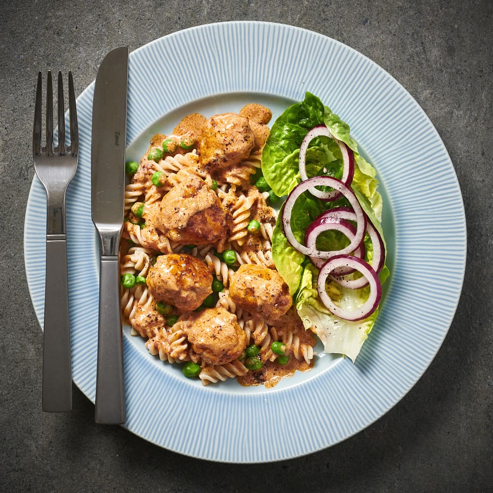 Kycklingköttbullar i krämig tomatsås