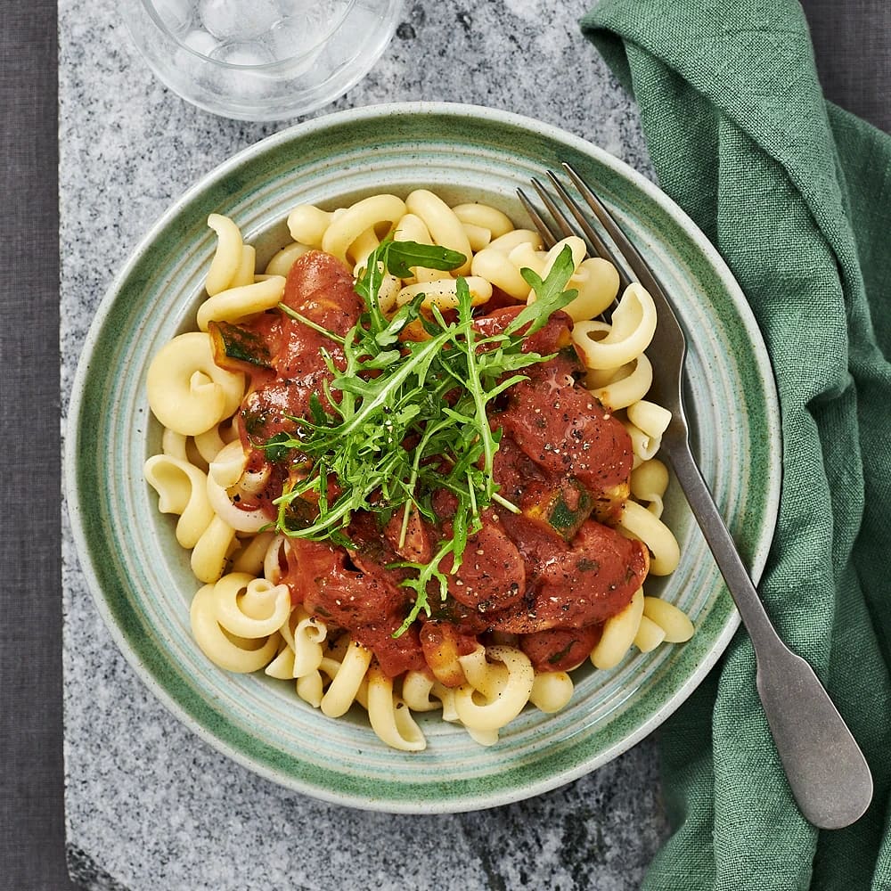 Pasta med tomatsås och salsiccia
