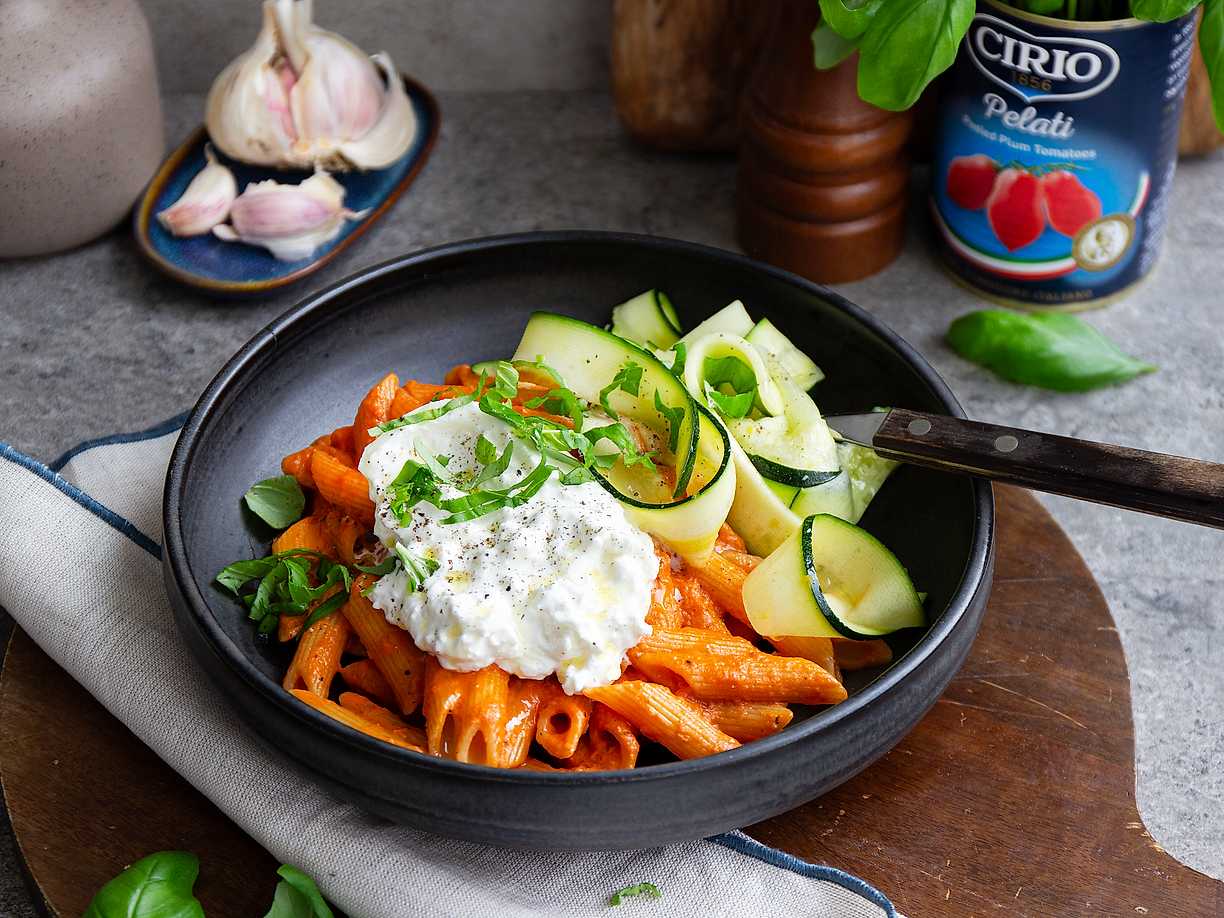 Snabb pasta och tomatsås med burrata