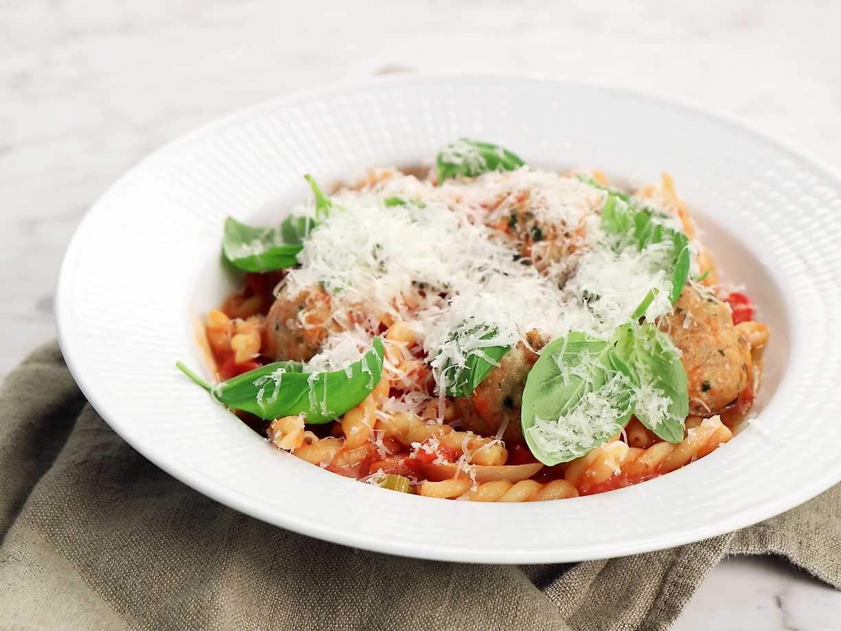 Kalkonfrikadeller i tomatsås