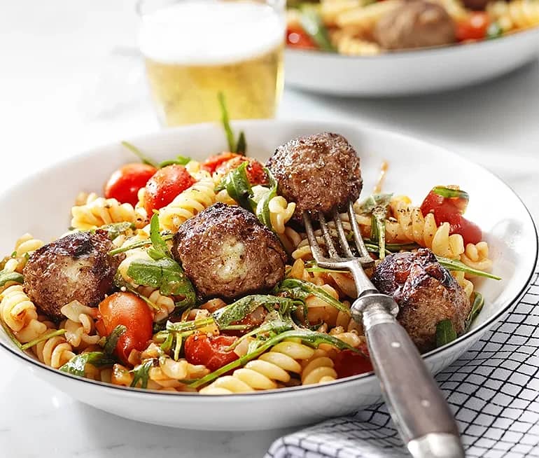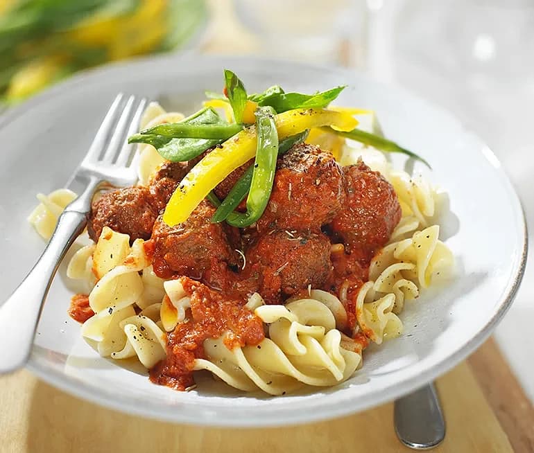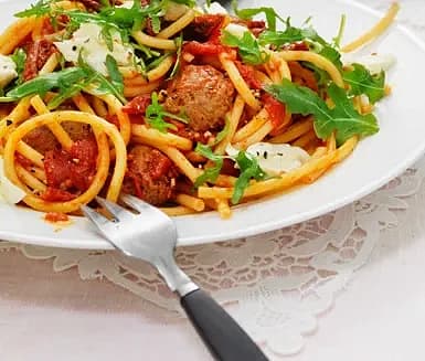 Pasta med köttbullar i tomatsås