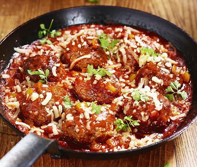 Köttbullar ”Lady och Lufsen” med italiensk tomatsås