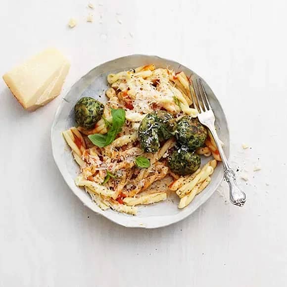 Ricotta- och spenatbollar i tomatsås