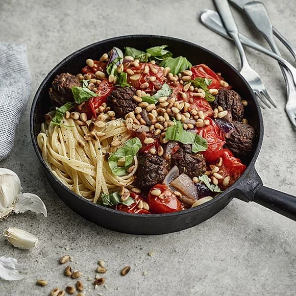 Lammfrikadeller i tomatsås med tagliatelle