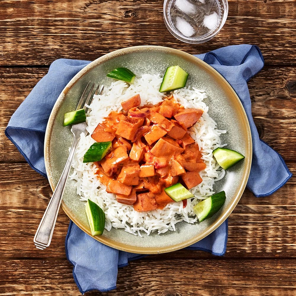 Falukorv i krämig tomatsås