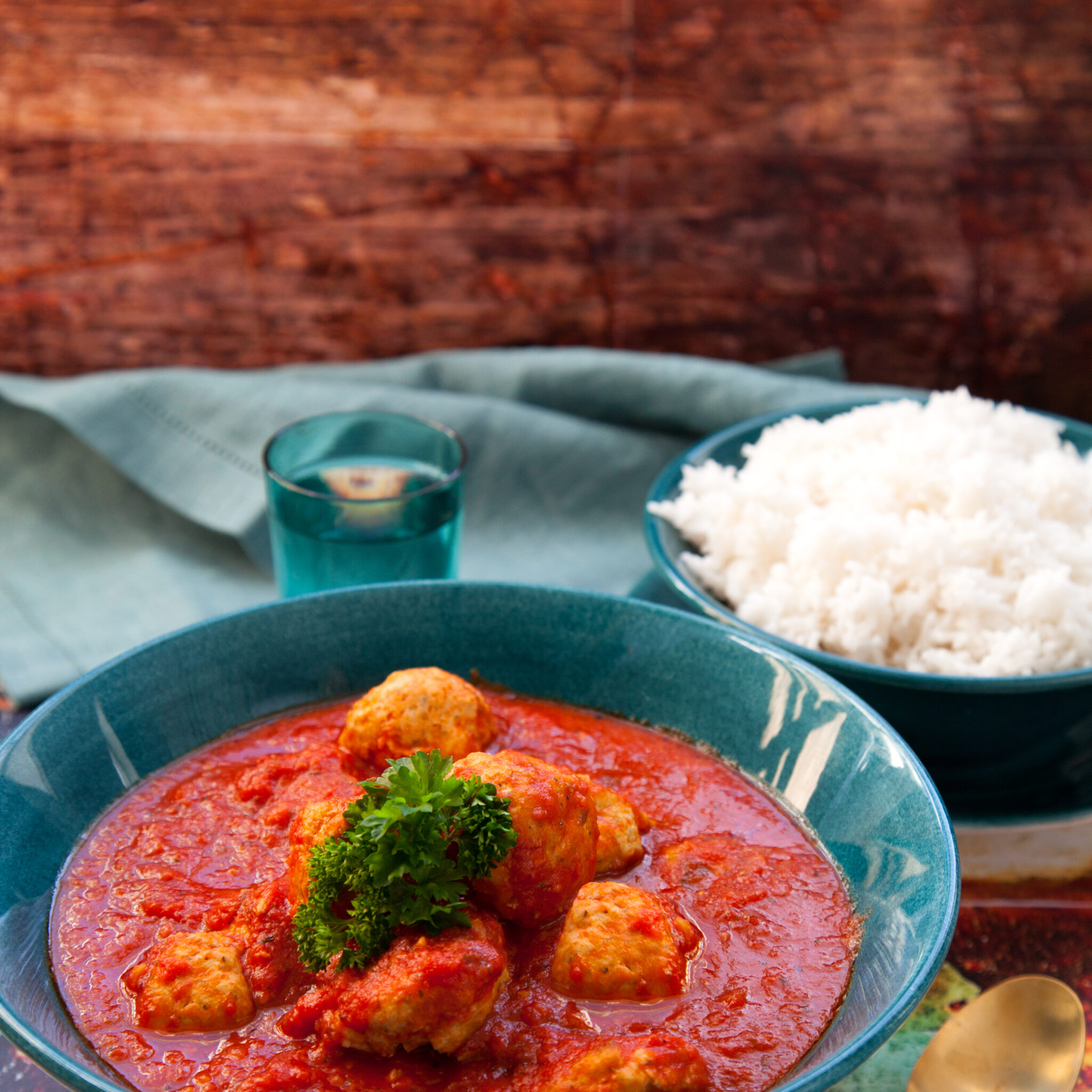 Kalkonfrikadeller i mustig tomatsås