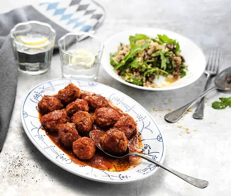 Kycklingköttbullar i tomatsås med quinoasallad