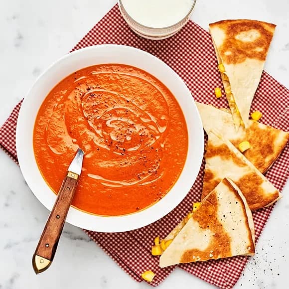 Italiensk tomatsoppa med mozzarellafyllda quesadillas