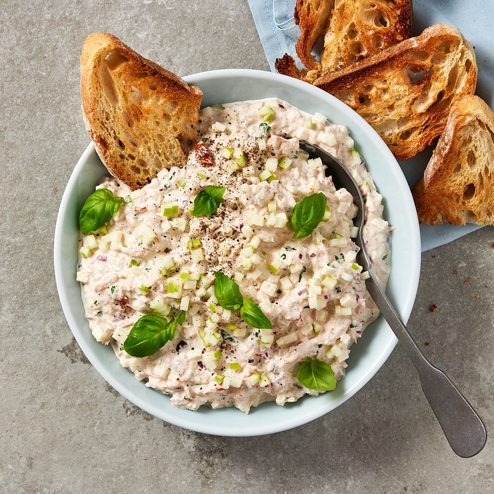 Toast med het tonfiskröra och tahini
