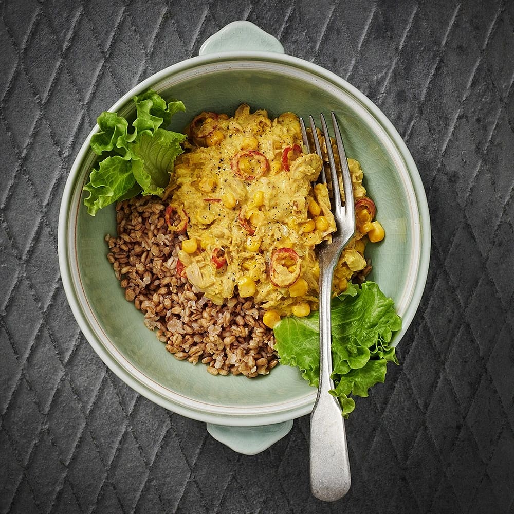 Tonfiskröra med curry och bakade potatisar