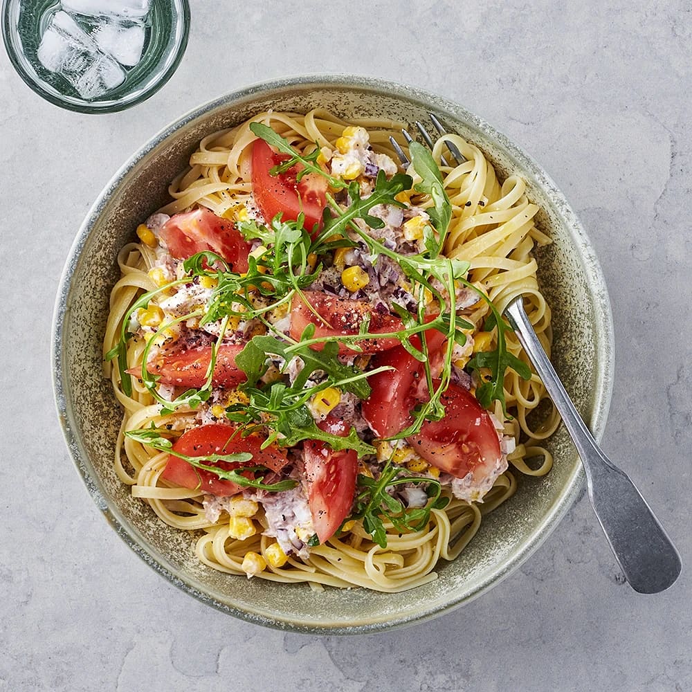 Nudelsallad med krämig tonfiskröra