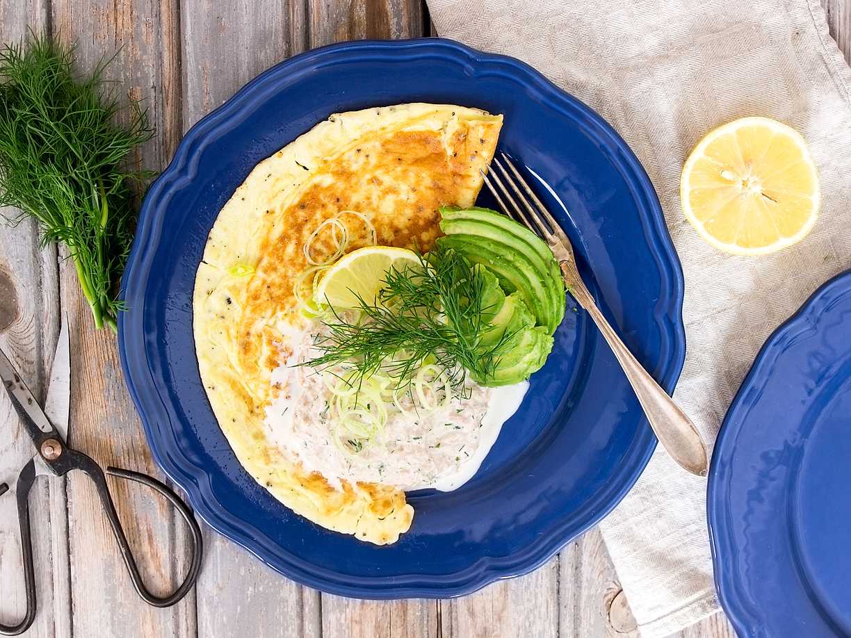Omelett med tonfiskröra och avokado