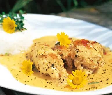 Gratinerad torsk med curry och rostad lök