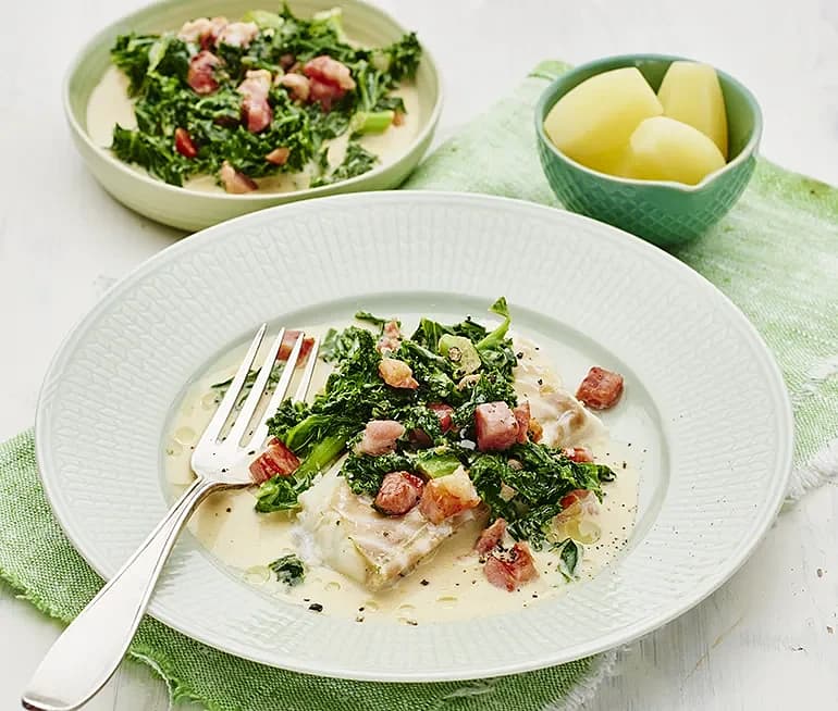 Ugnsbakad torsk med krämig svartkål