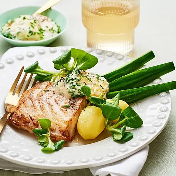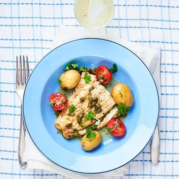 Stekt torsk med kapris och persiljesmör