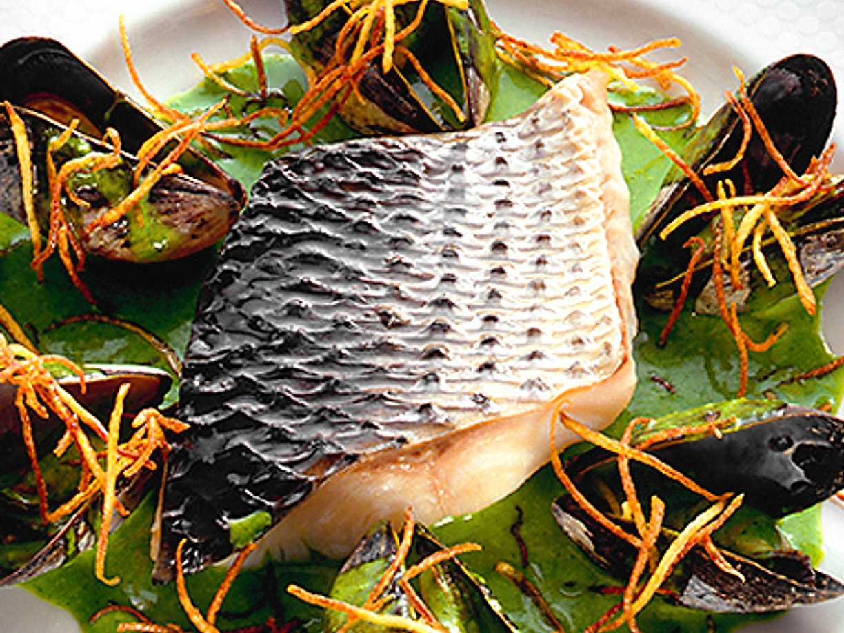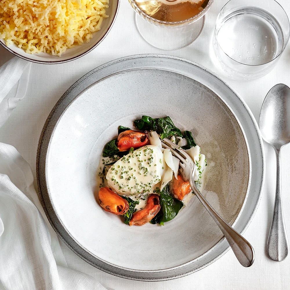 Lättrimmad torsk med blåmusslor och champagnesås