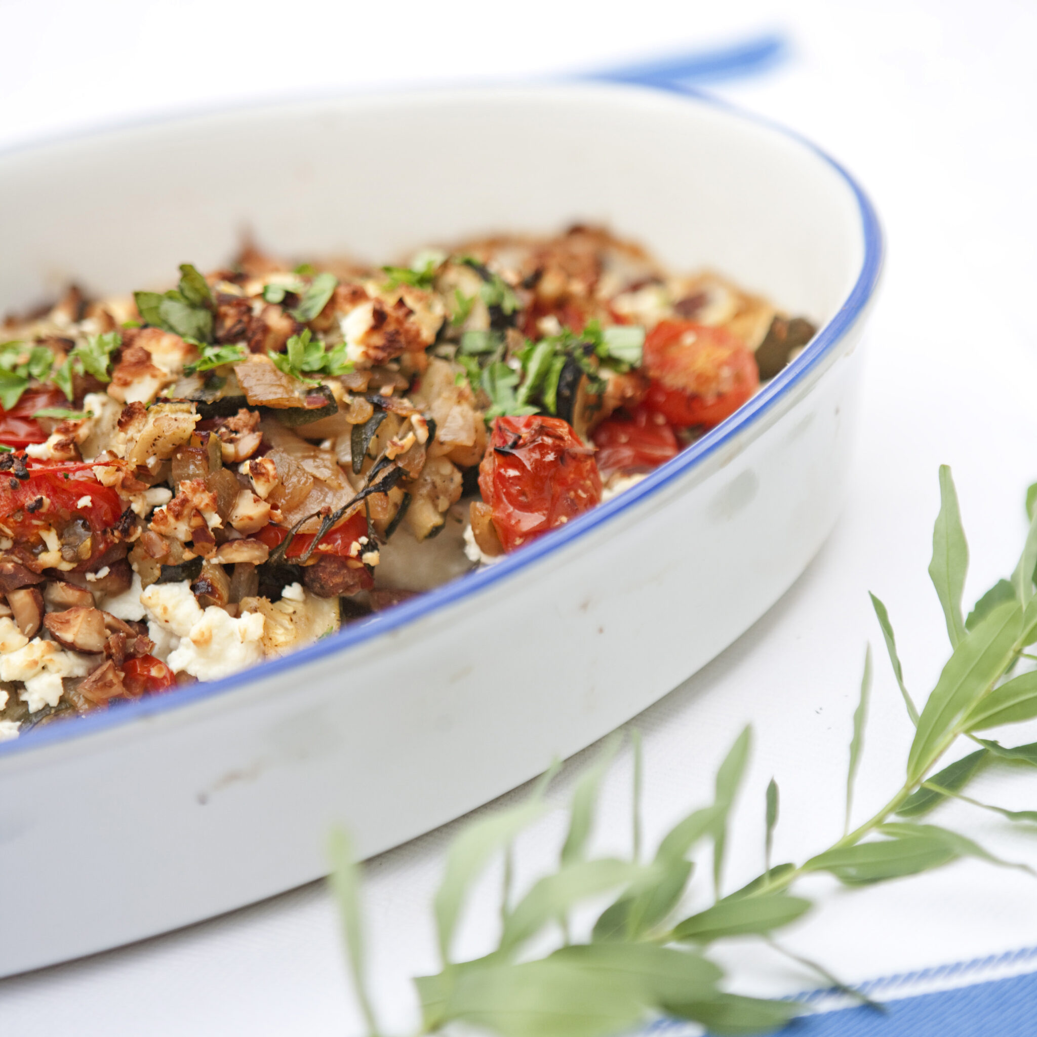 Ugnsgratinerad torsk med medelhavstopping
