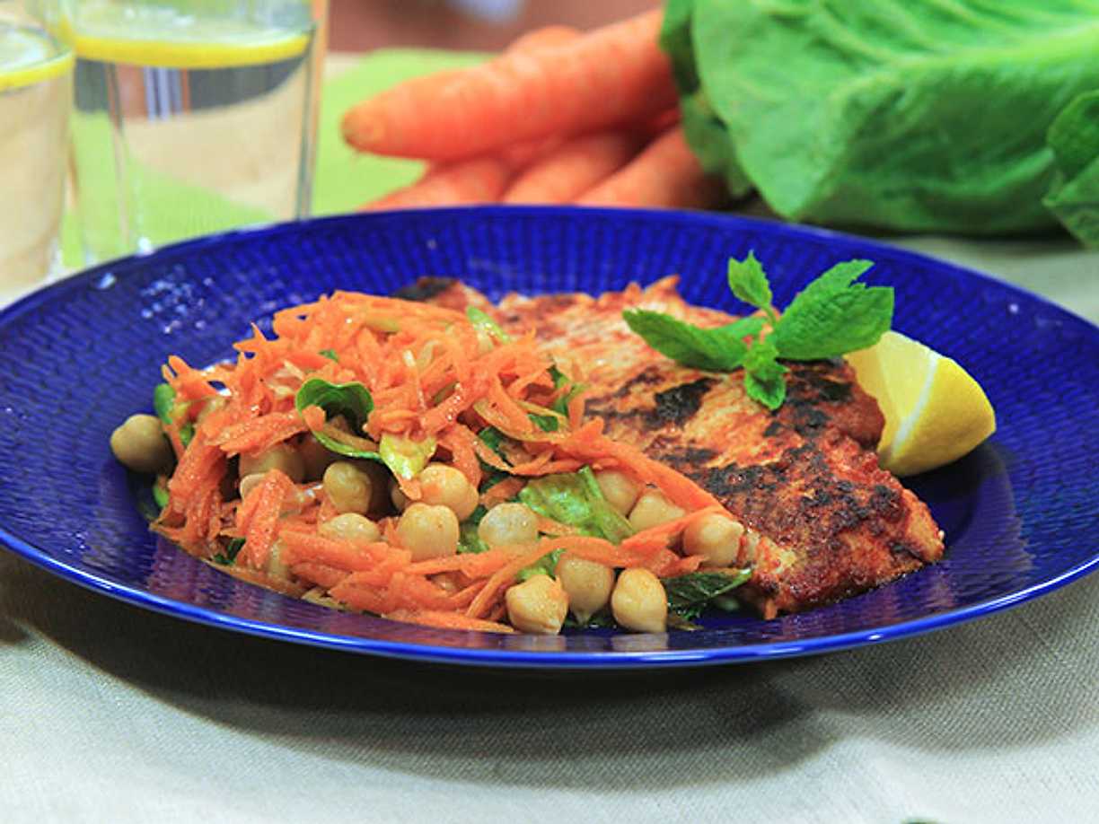 Torsk med harissa och morotssallad