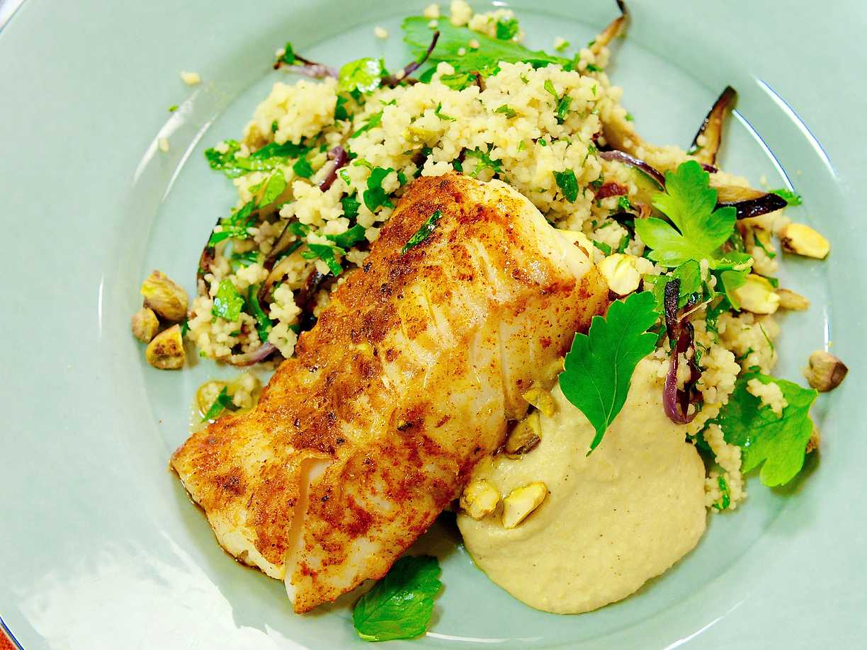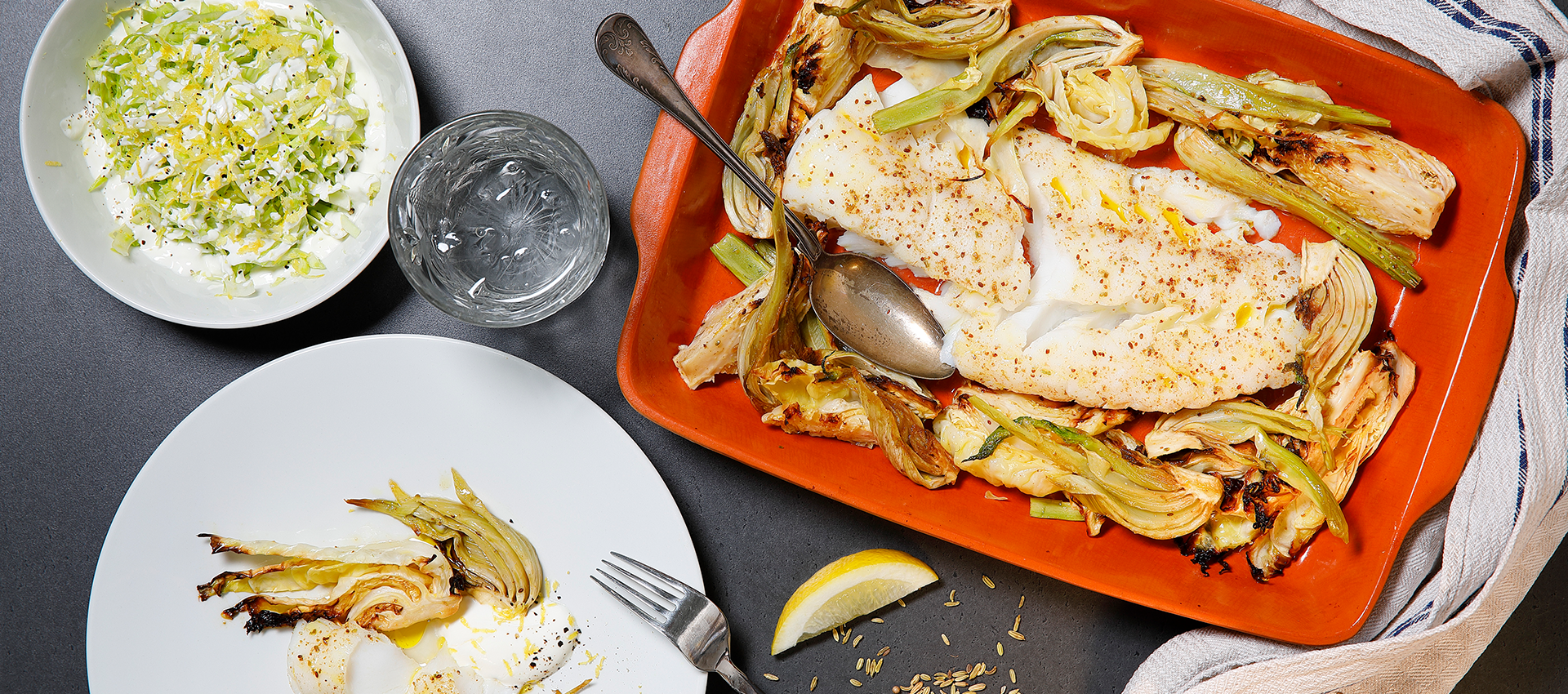 Kryddbakad torsk med bakad spetskål & fänkål samt gräddfil