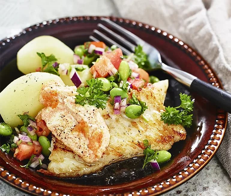 Paprikastekt torsk med krämig majs