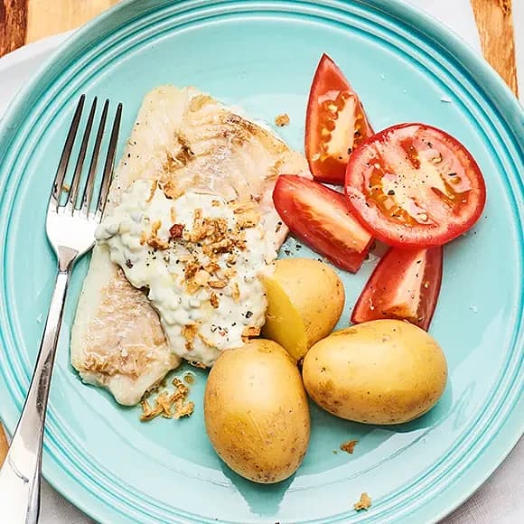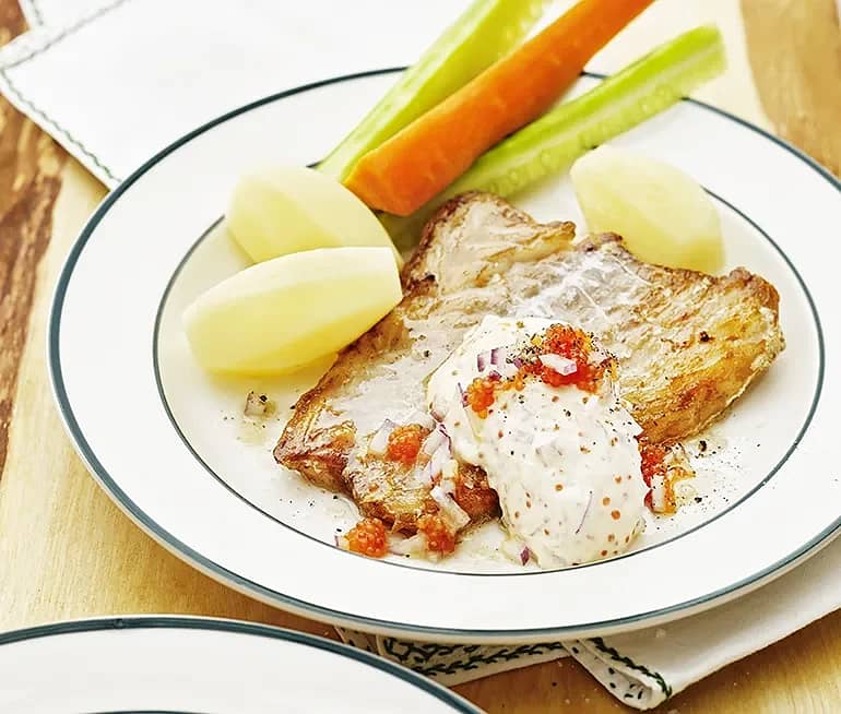 Stekt torsk med gurkmajonnäs