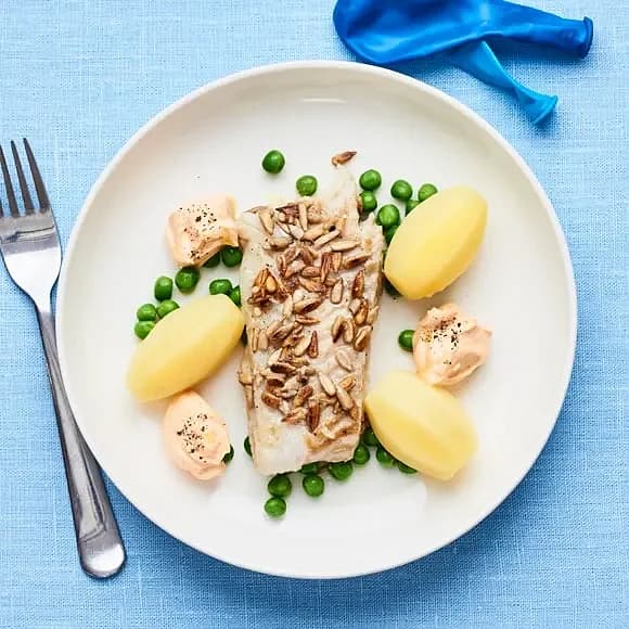 Fröstekt torsk med rosa sås och ärter