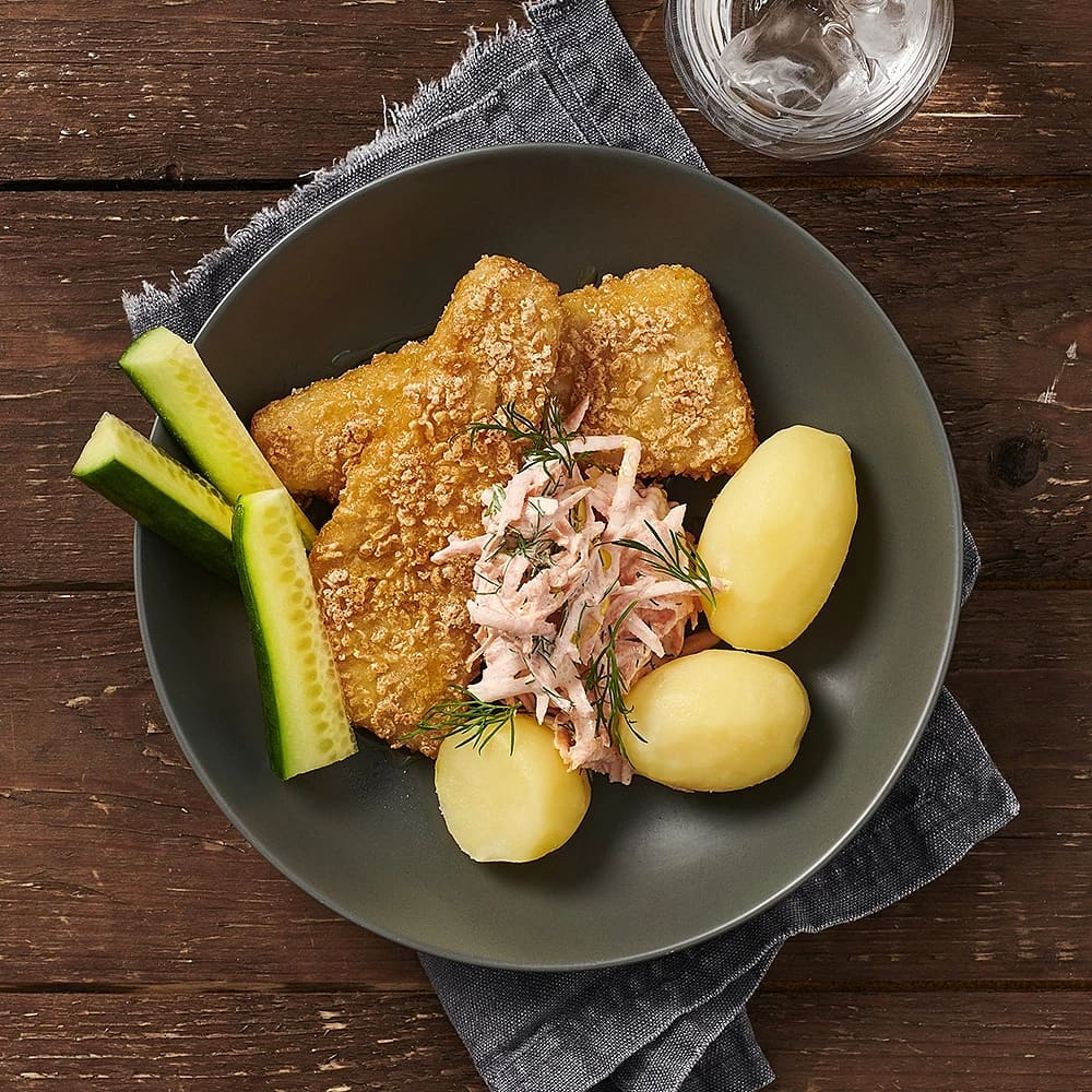 Cornflakespanerad torsk med remouladsås