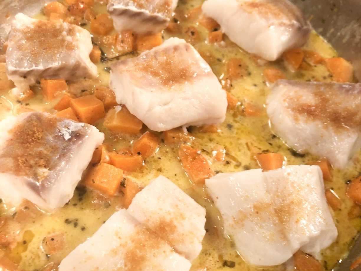 Fiskgryta på torsk med kokos och curry