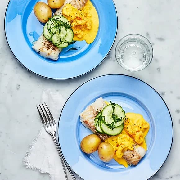 Torskfilé med saffrans- och räkröra