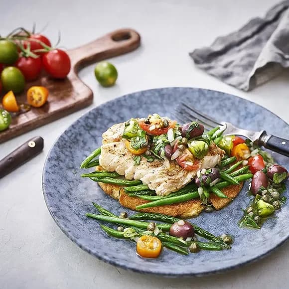 Stekt torskrygg med medelhavssalsa