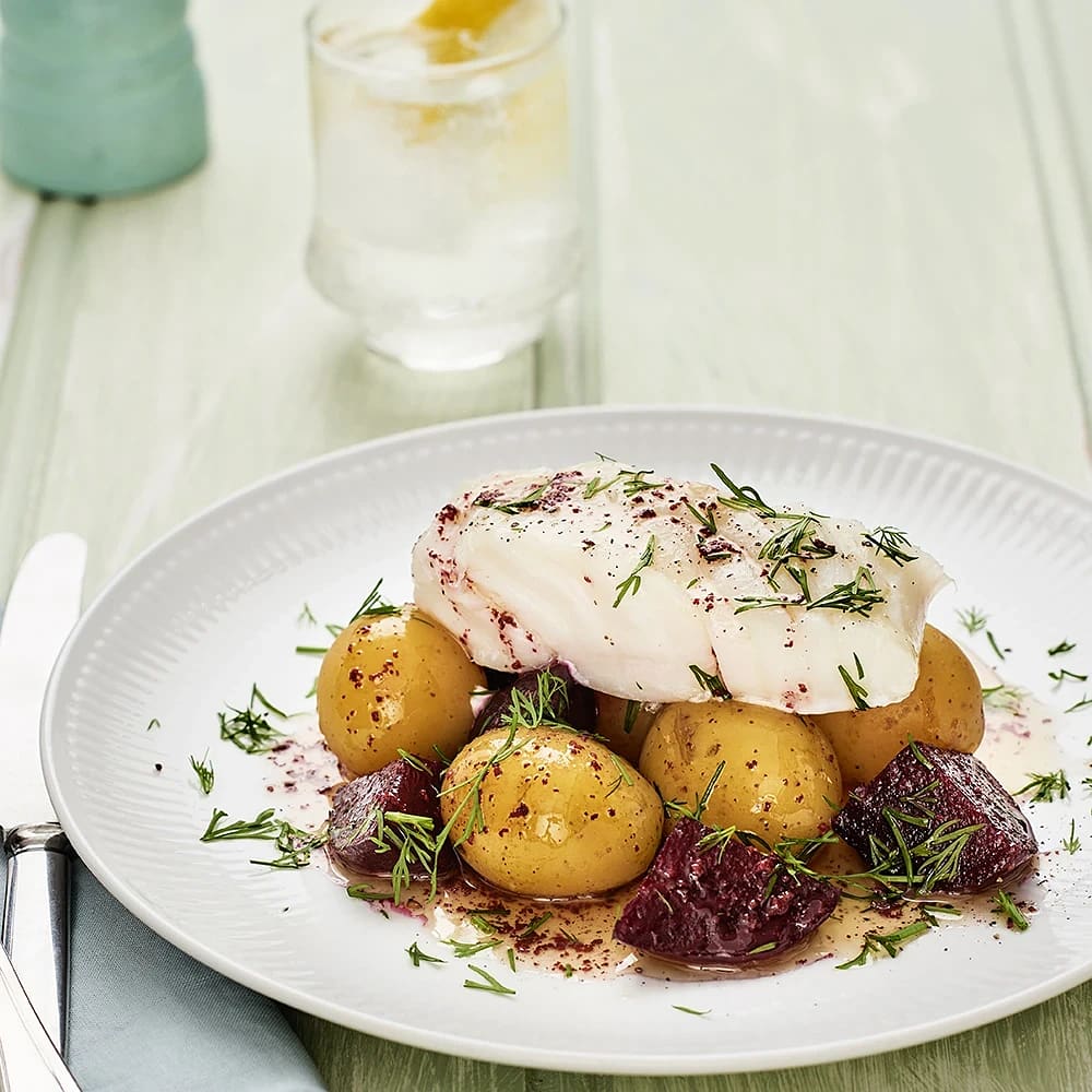 Torskrygg med rödbetor, brynt smör och dill