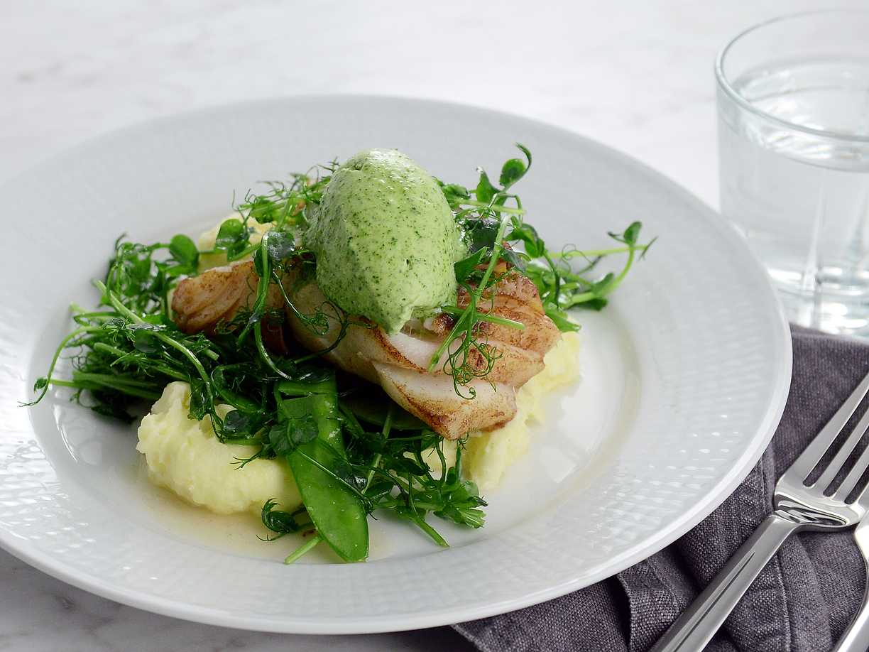 Smörstekt torskrygg med potatisstomp och spenat