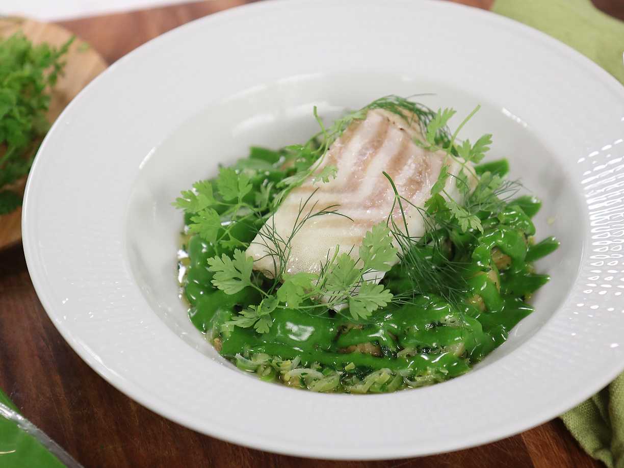 Torskrygg i grön currysås med krämig sallad