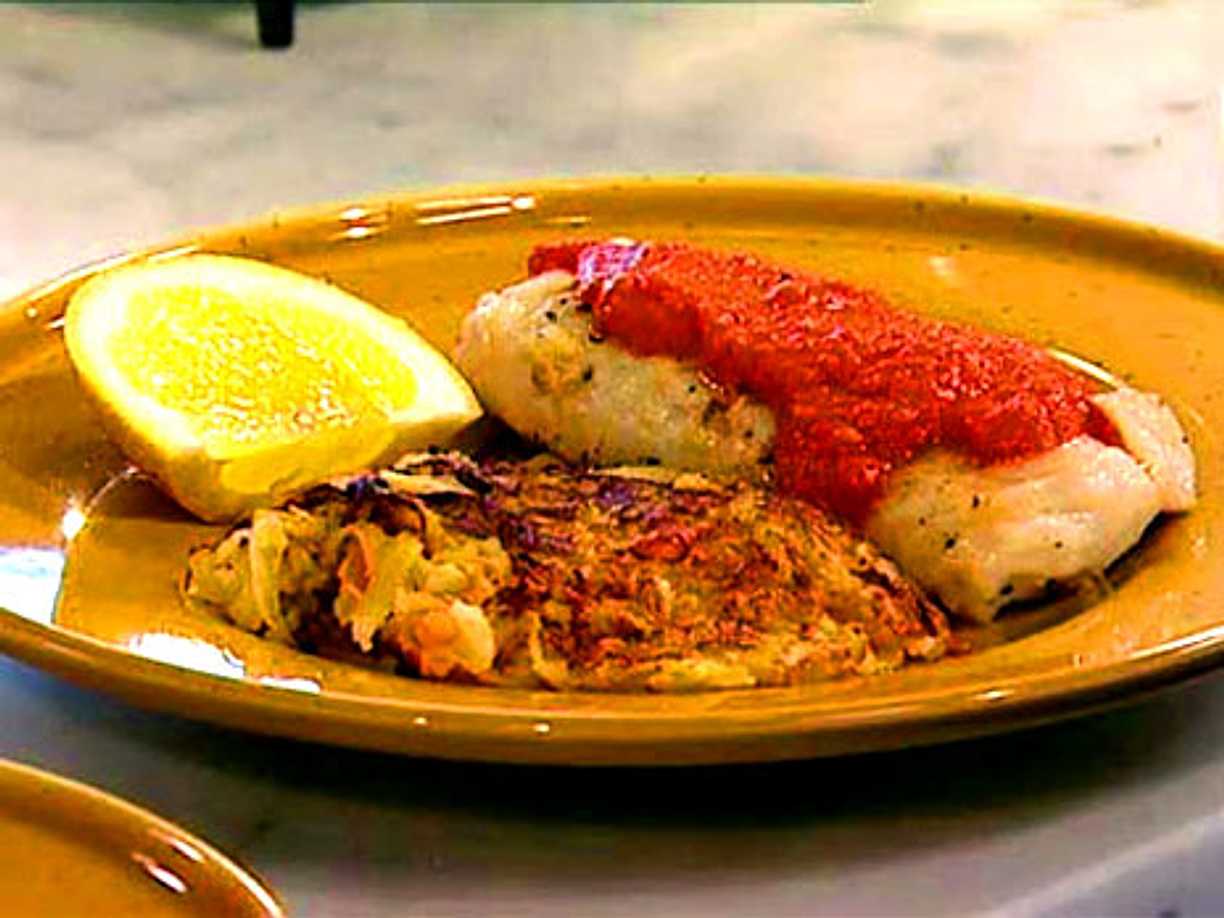Torskrygg med rotsaksrösti och paprikasås
