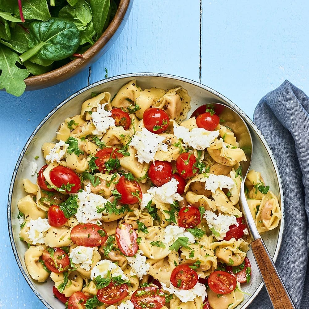Krämig tortellini med tomatsallad