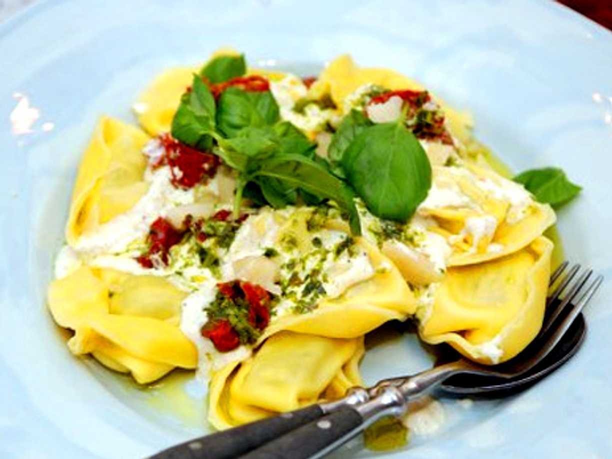 Tortellini med ricotta och basilika