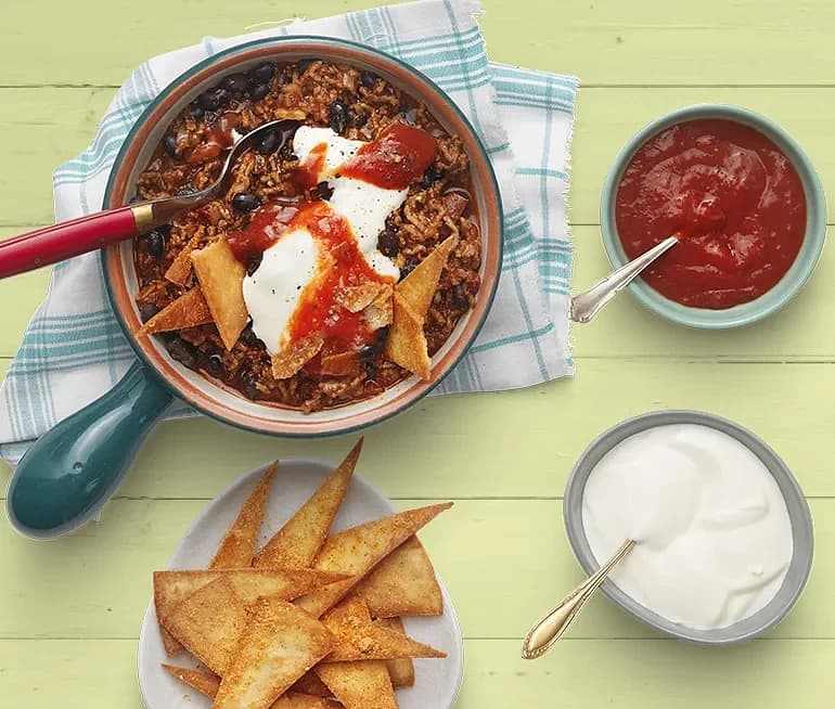 Beef chili i tortilla