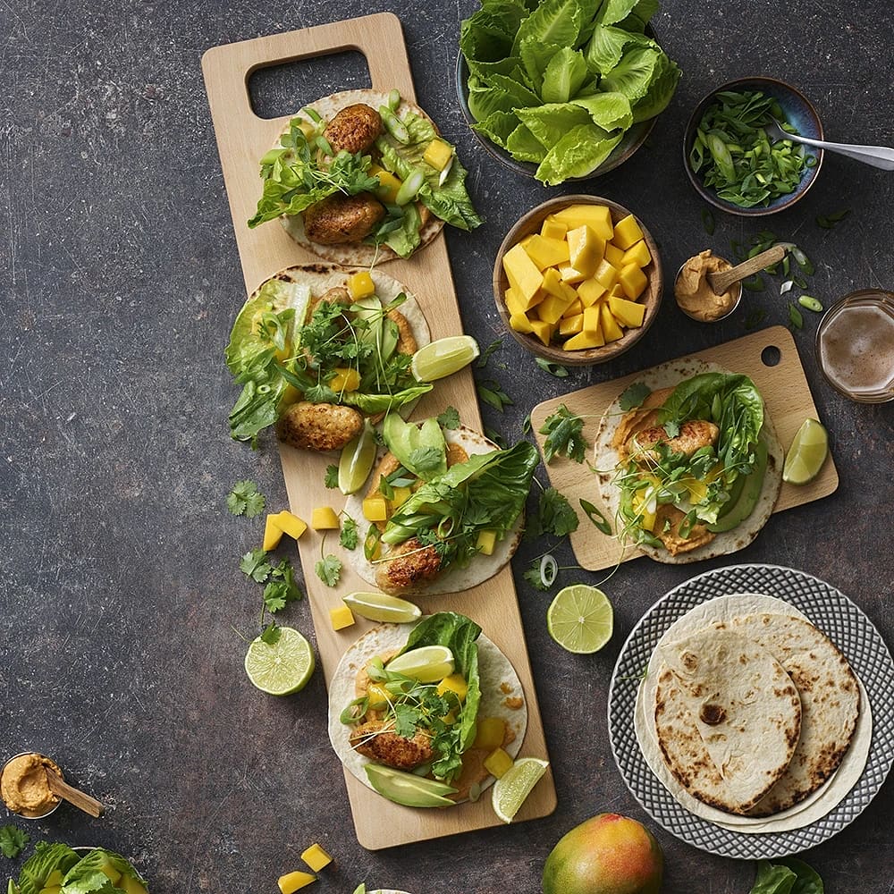 Myntamarinerad kycklingfilé i tortilla med ananas och jalapeño