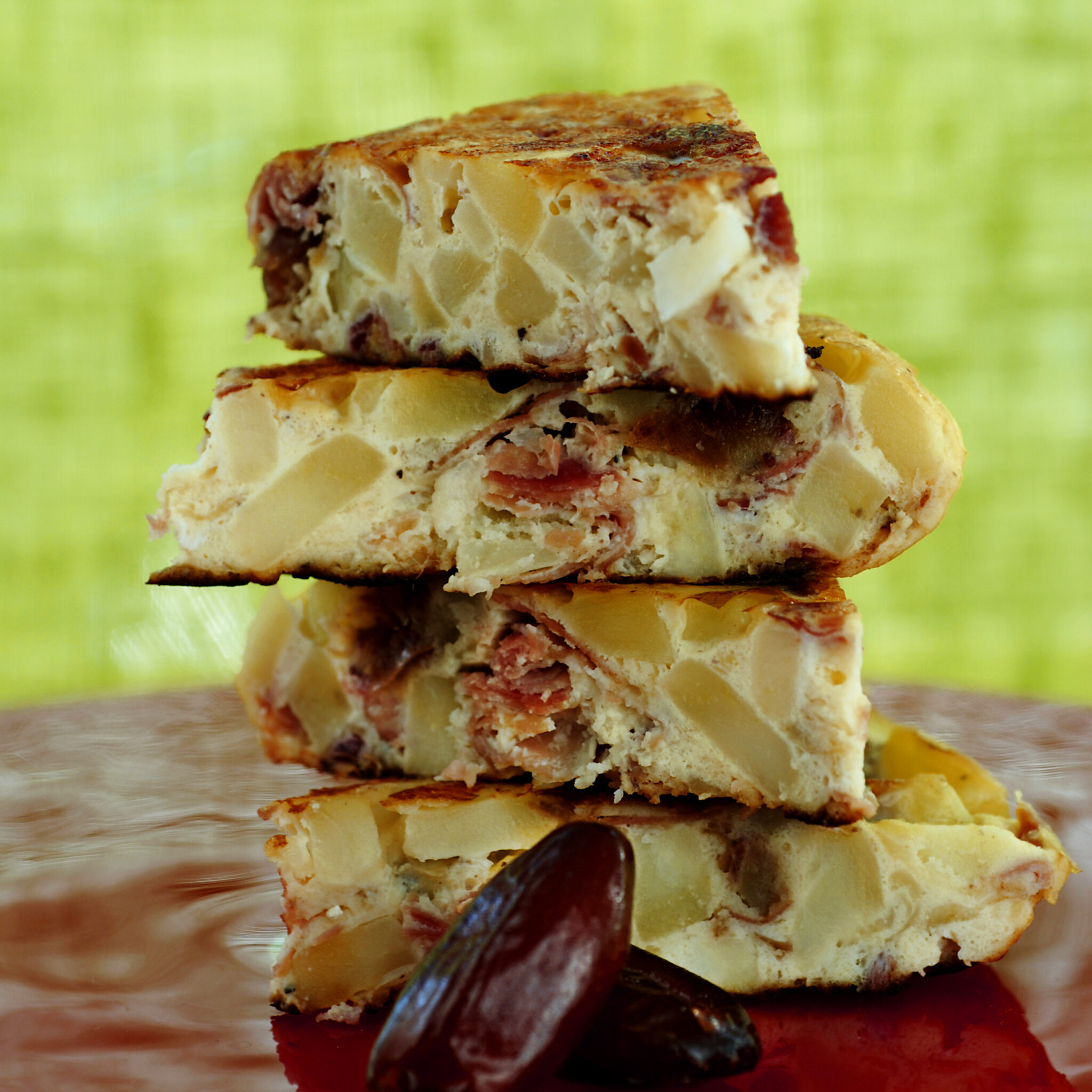 Spansk omelett (tortilla) med vegetarisk bacon och paprika