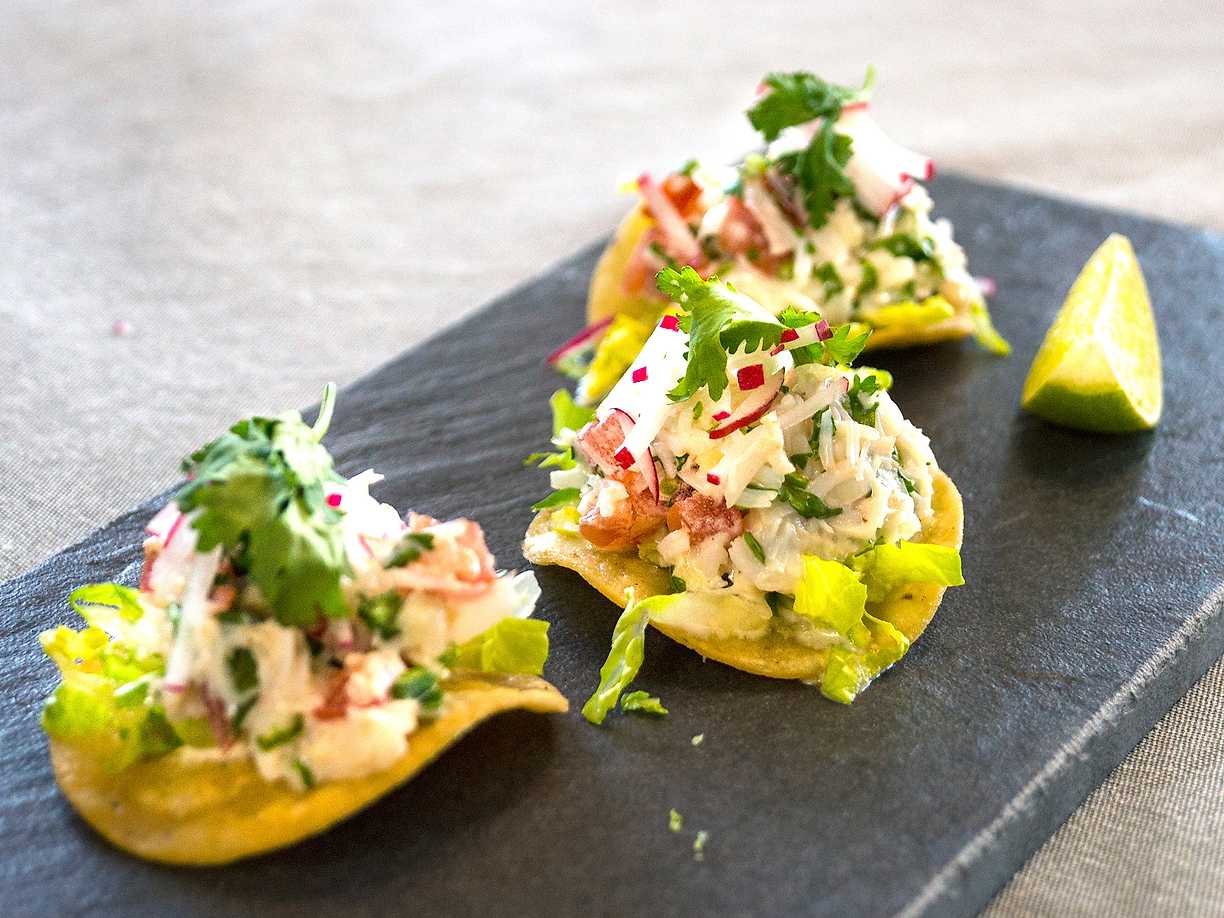 Friterade tortillas med krabbröra
