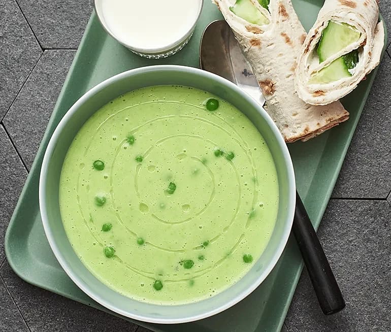 Potatis- och purjolökssoppa med tunnbrödrulle