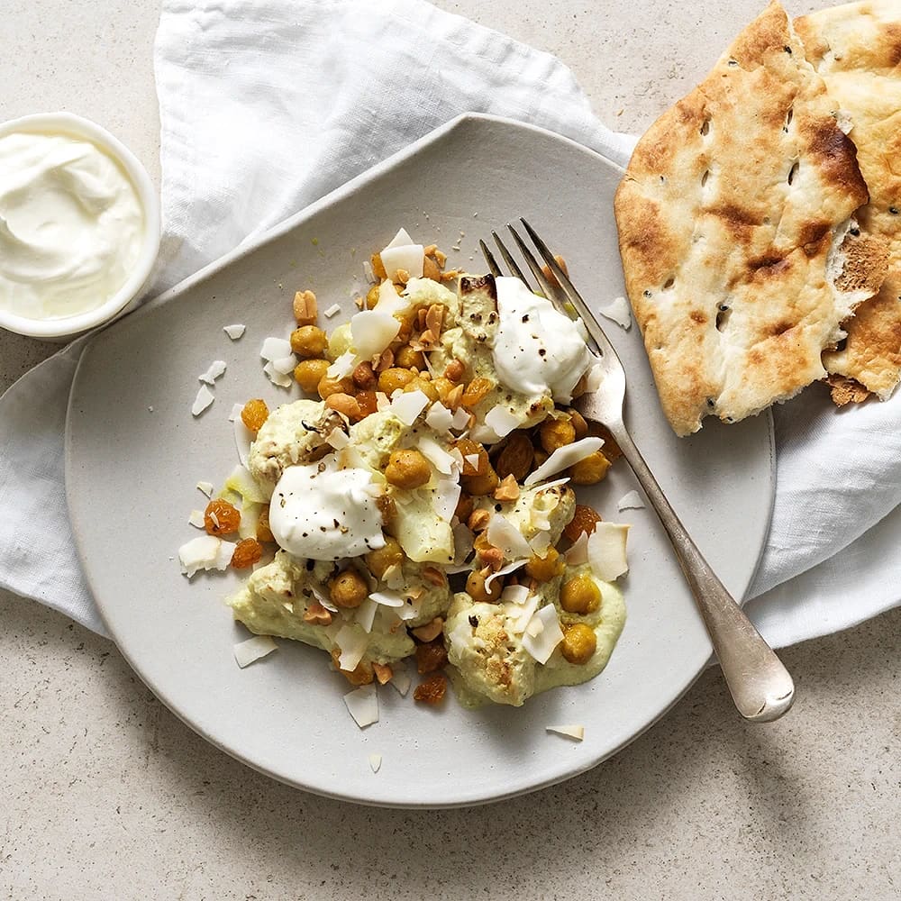 Ugnsbakad blomkål med kokos och rostade kikärtor