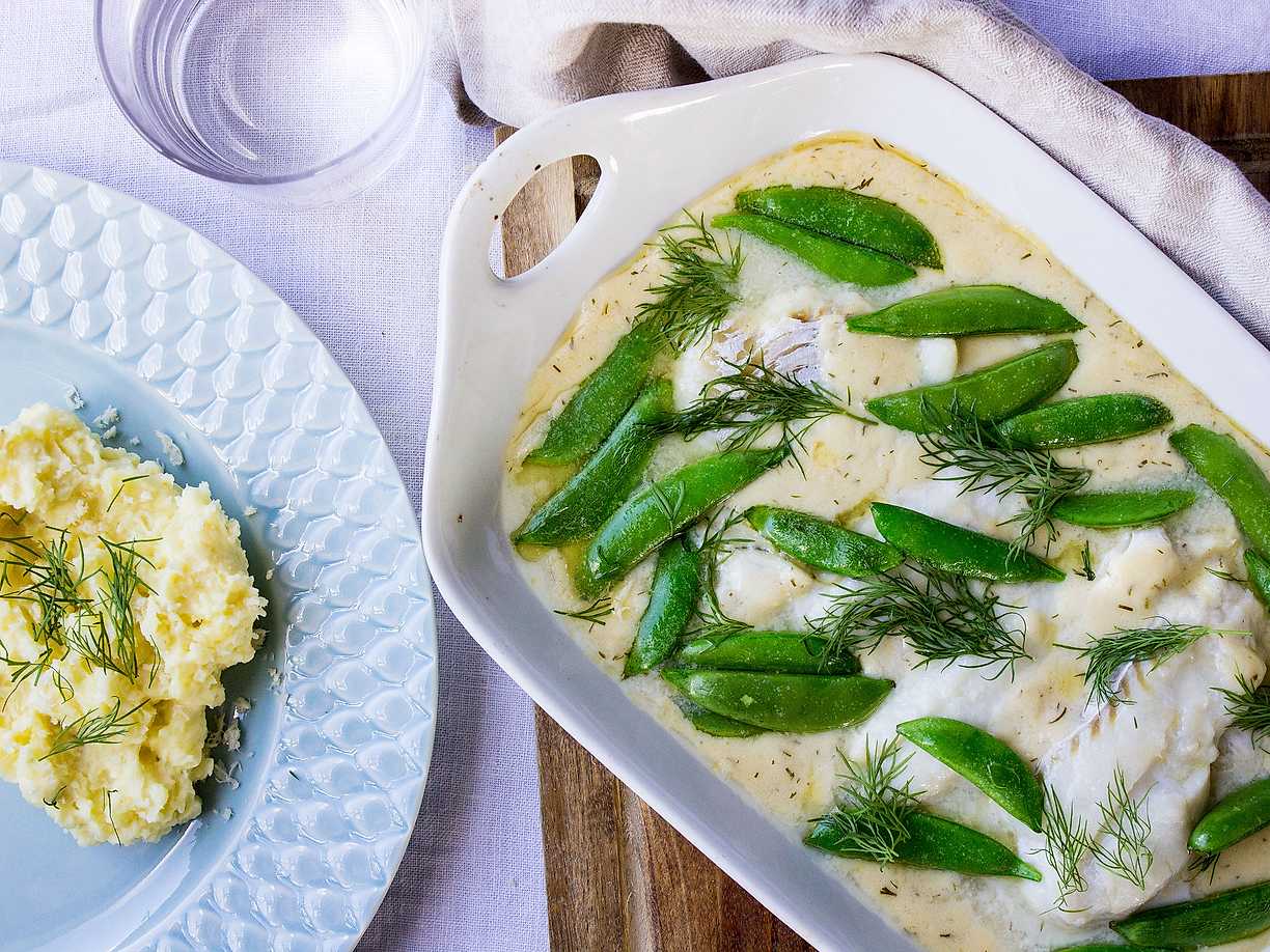 Ugnsbakad sej i dillsås med pepparrotsmos