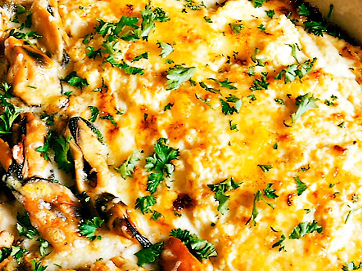 Ugnsomelett med musselstuvning