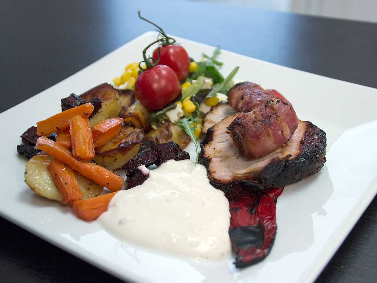 Saftig fläskfilé med bearnaise och ugnsrostade rotsaker