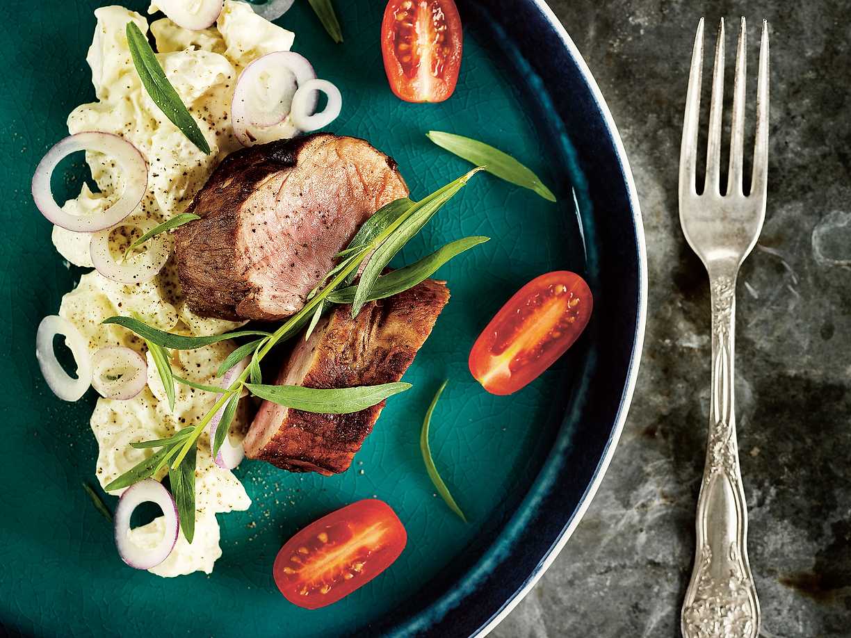 Saftig ugnsstekt fläskfilé med krämig potatissallad