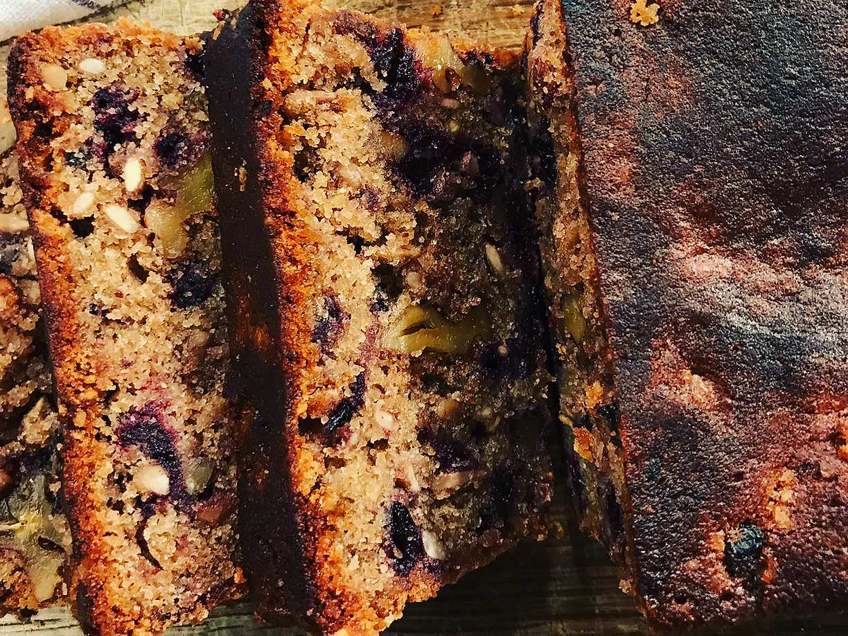 Blåbärskaka med solrosfrön och karamelliserade valnötter