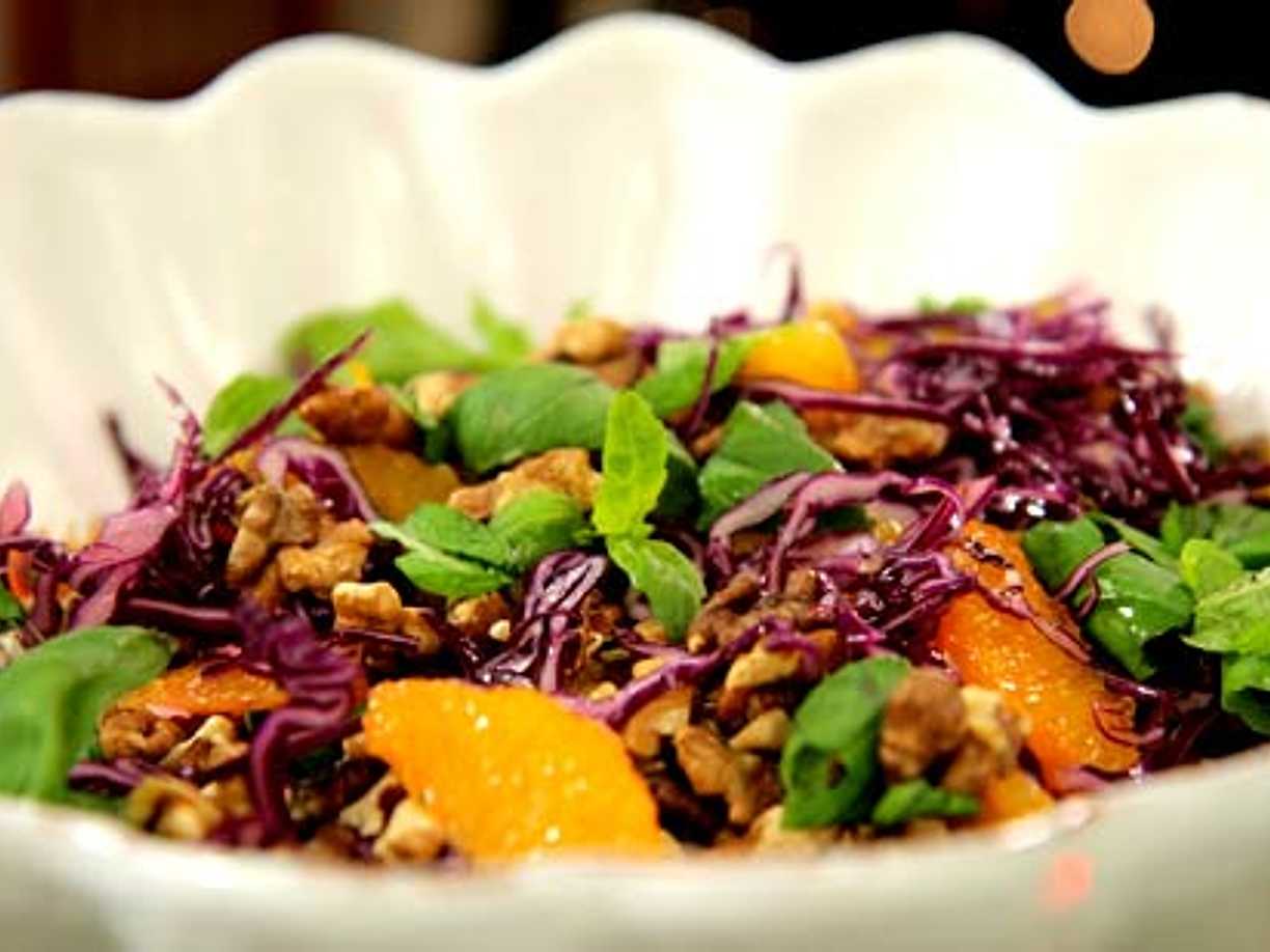 Bakad spetskål med kapris-vinegrette och rostade valnötter