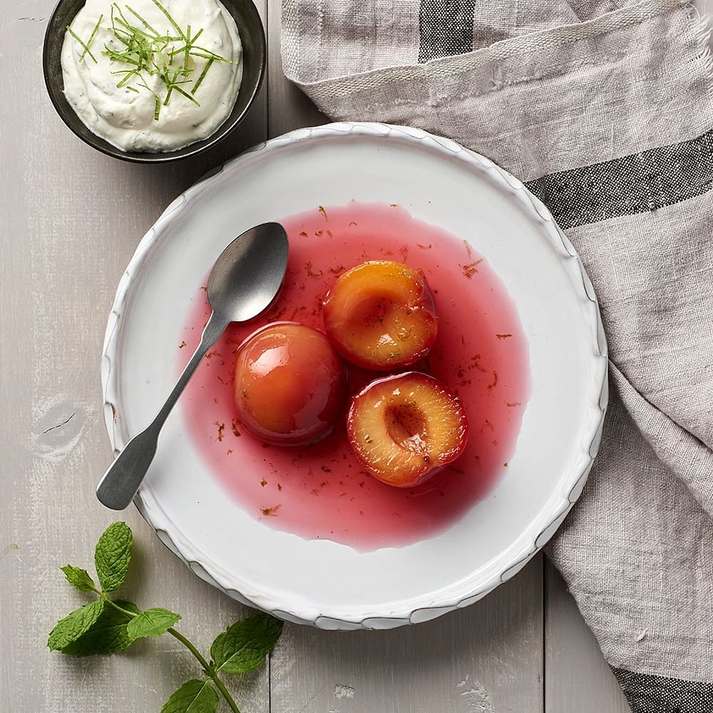 Vit chokladpannacotta med vaniljkokta vinteräpplen